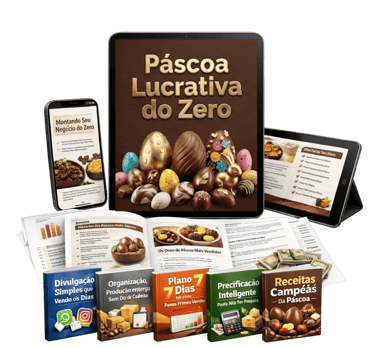 O “Páscoa Lucrativa do Zero” é um combo completo com guias educativos em pdf criado para quem deseja montar um pequeno negócio de doces na Páscoa, mesmo começando sem experiência.